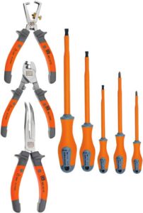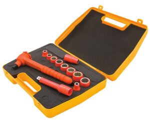 JohnDow’s Insulated Socket Wrench Set 3/8″ and 8 Bi-Material Insulated Tools Kit are both rated for 1,000V. The bi-material kit covers the hand tools technicians reach for most often – screwdrivers, pliers, cutters – all with insulated handles designed to IEC 60900 standards.